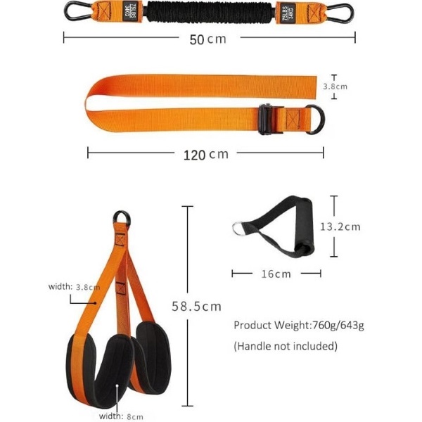 2x vagy 3x latex ellenállás cső (a terhelhetőségtől függően: a 70 kg-os változat 2 csövet tartalmaz; a 100 kg-os változat 1 további csövet tartalmaz a nagyobb ellenállás érdekében)