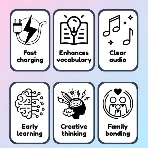 🎶 Ez az interaktív zenélő játék dalokon, meséken és játékon keresztül segíti a gyermekeket az angol nyelv természetes elsajátításában.