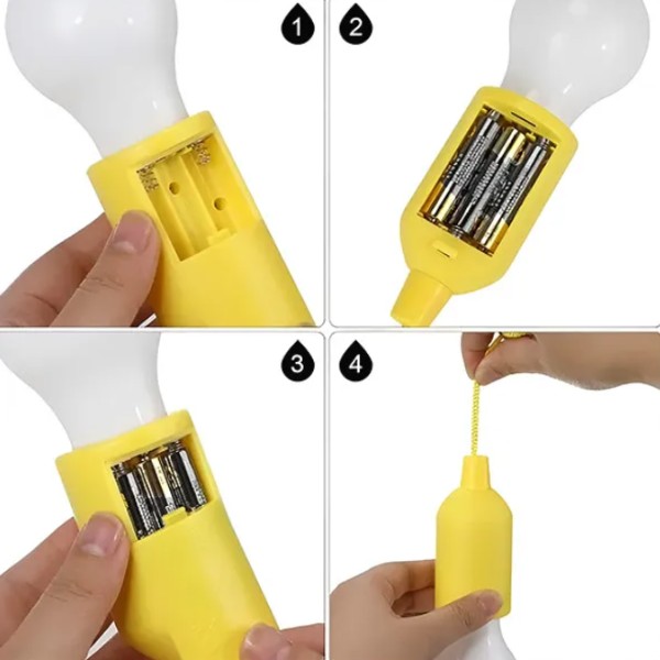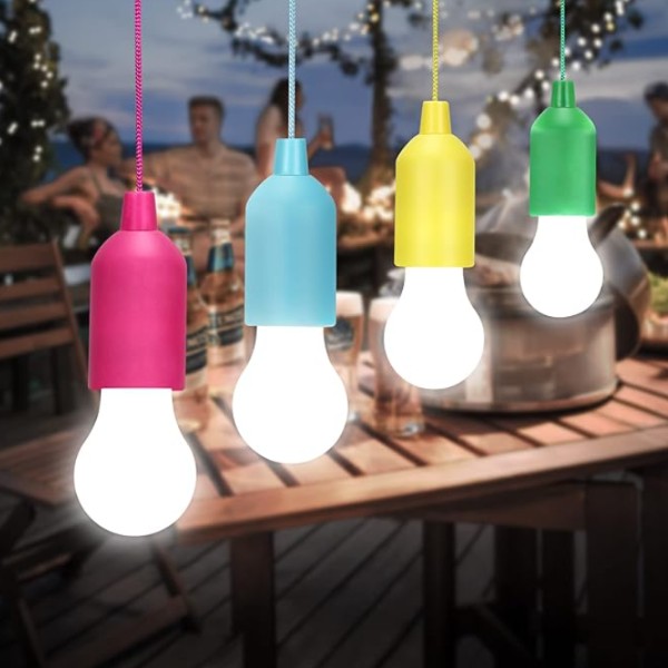4 x Akkumulátoros vezeték nélküli húzózsinóros lámpa (véletlenszerű színek)